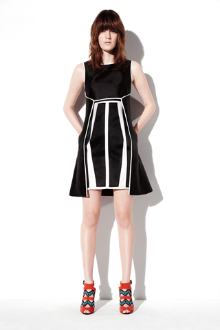 with slight flare and evening dresses in angular cut out and corsetry details.