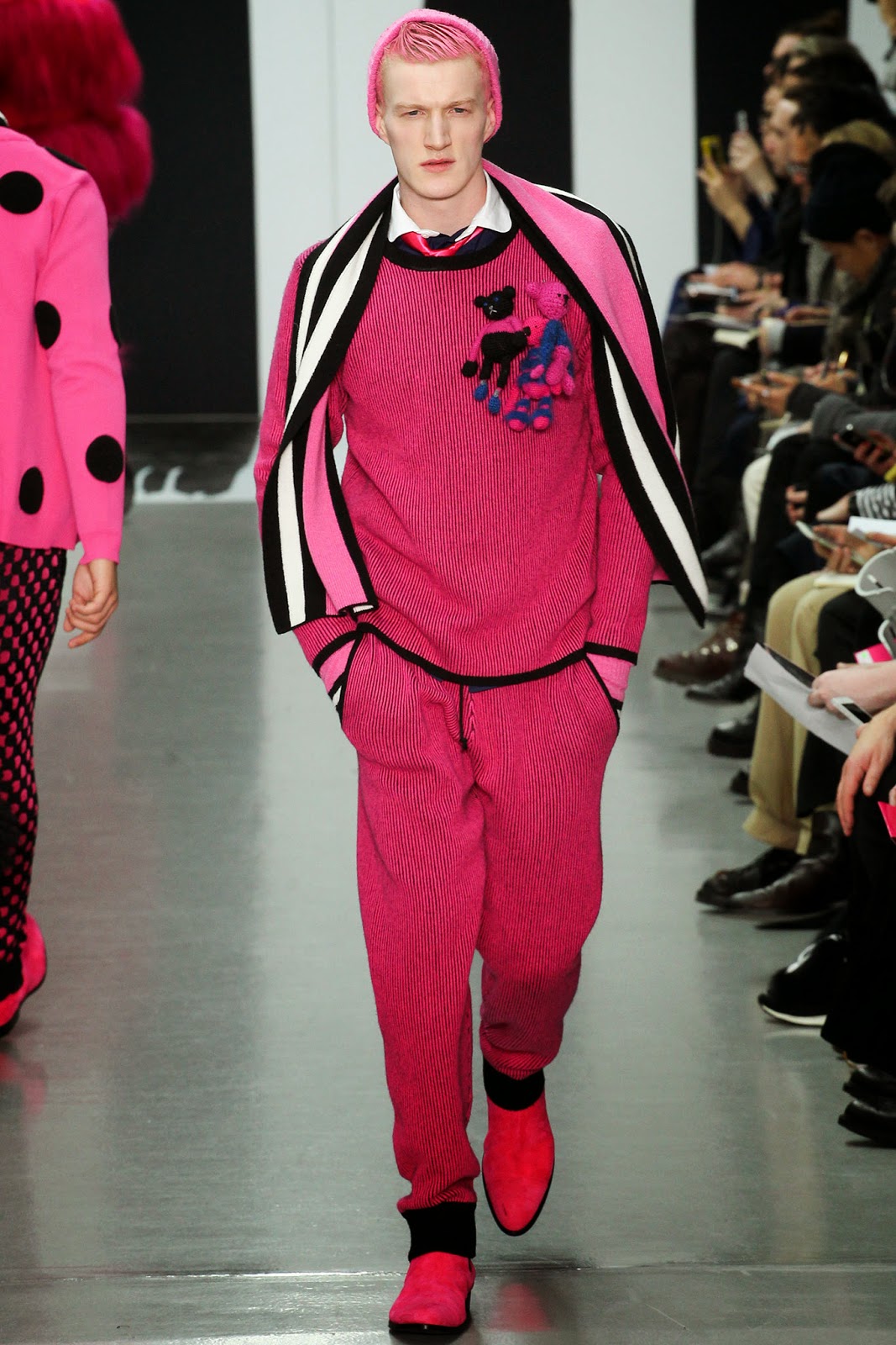 their sweaters and jackets and dragged giant stuffed teddy bears on the runway.